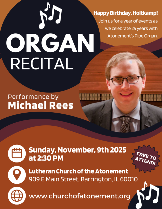 Organ Recital Sunday, November 9th, 2025, at 2:30 PM Join us for our upcoming Organ Recital on November 9th with a performance by Michael Rees! All are welcome. Come and see!